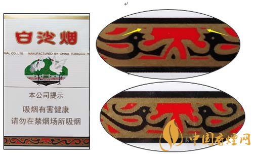 白沙(硬)因江南名泉式 ---“白沙古井”而得名,包裝以“白沙古井” 為背景,象征吉祥如意的雙鶴圖形為主體圖案。產(chǎn)品不斷應(yīng)用新技術(shù),科學(xué)配方,合理配香配料,口味特點(diǎn):煙香濃馥、諧調(diào),余味純正舒適。現(xiàn)就該卷煙小盒鑒別方法介紹如下: