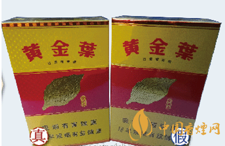 商標(biāo)材質(zhì)差異比對(duì):真品商標(biāo)紙選用三維透鏡特種材料,商標(biāo)圖案呈現(xiàn)出三維立體星星點(diǎn)點(diǎn)閃亮點(diǎn),商標(biāo)圖案“大金葉”有鑲嵌在商標(biāo)紙效果,凸顯“大金葉”的立體浮雕效果;假煙材質(zhì)劣質(zhì),無法呈現(xiàn)出星星點(diǎn)點(diǎn)閃亮點(diǎn),“大金葉”沒有凸顯的立體浮雕效果,仿制技術(shù)粗糙,與真品材質(zhì)存在明顯差異。