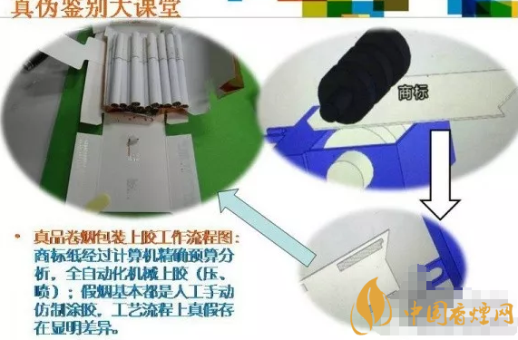 延安(1935)怎么分真假?拆開(kāi)膠水痕跡形成: 真品卷煙均為機(jī)器上膠,制假分子目前都是手工涂膠水。