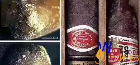 3、雪茄發(fā)霉了:這個(gè)大伙務(wù)必看清楚的,茄煙灰白點(diǎn)是什么?是綠色的毛毛。保存雪茄如果出現(xiàn)霉點(diǎn),那就說明這個(gè)雪茄柜濕度太大了。其實(shí)你也不用慌張,先把發(fā)霉的雪茄拿出來,避免傳給其它的雪茄。
